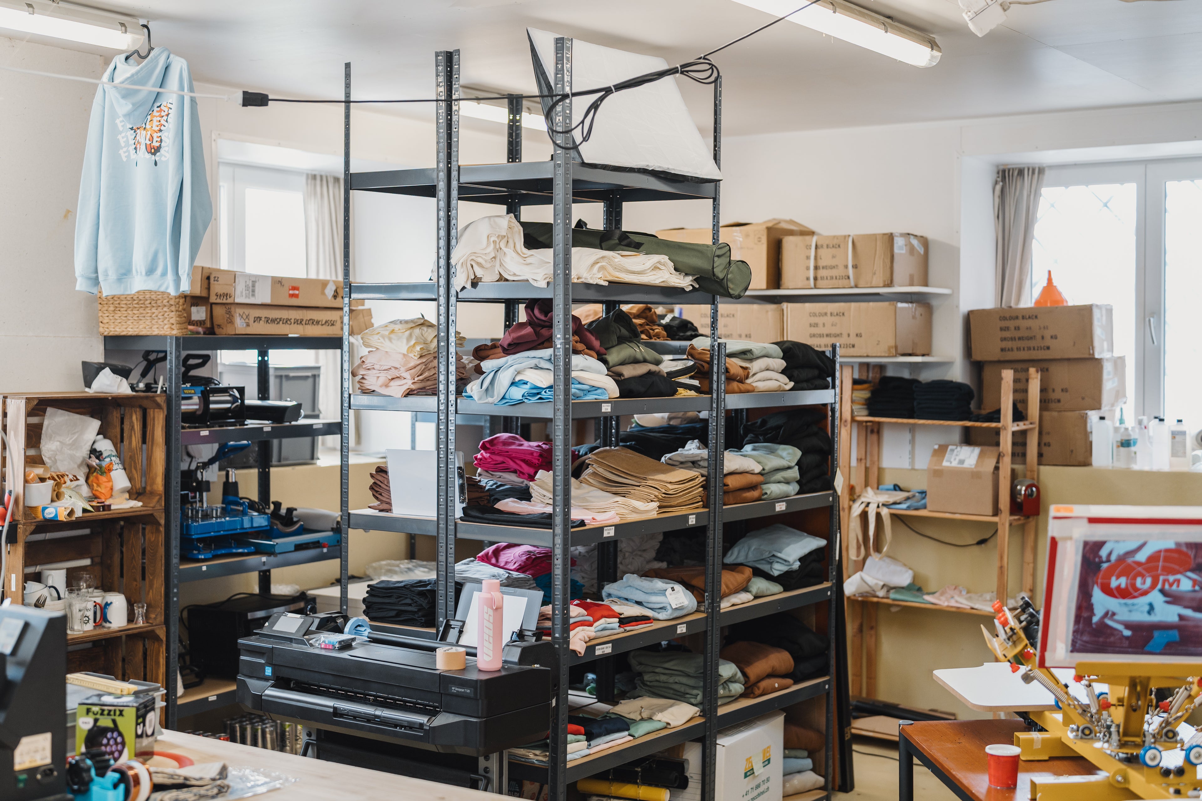 Was als kleines DIY-Projekt im Estrich unter der Leitung von Jan und Virginia begann, hat sich zu einem kreativen Atelier in Müllheim TG entwickelt. Hier entstehen täglich einzigartige Textilien – gestickt, im Siebdruck veredelt oder im Foliendruck umgesetzt.